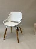 Der Numo Konferenzstuhl bietet ein einzigartiges Design mit Holzbeinen und einer weißen, unpolierten Sitzfläche. Perfekt für Konferenzen oder Besprechungen, bietet er eine stabile und stilvolle Sitzoption. Ausstellungsstück zum Sonderpreis aufgrund einer Sortimentsänderung. Technische Daten auf Anfrage erhältlich.